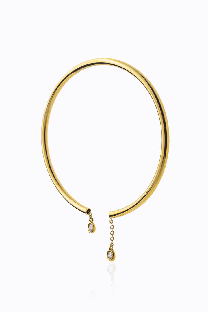 rigido, in oro giallo, con terminali recanti due diamanti tremblant per totali ct 0,12 ca