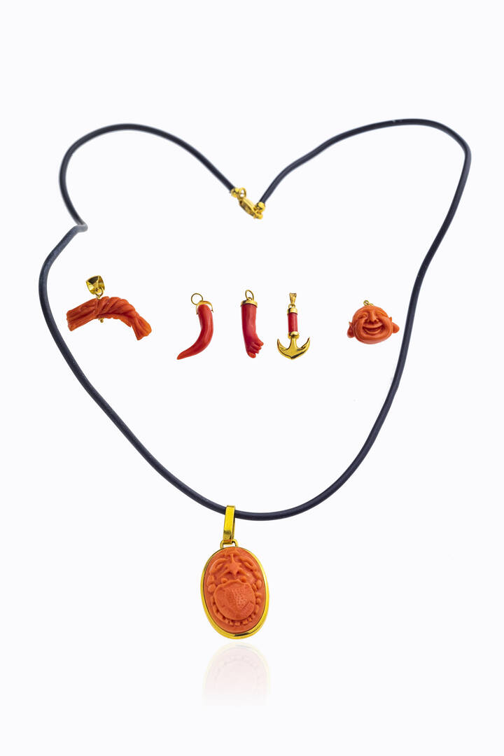 LOTTO DI SEI CIONDOLI IN CORALLO