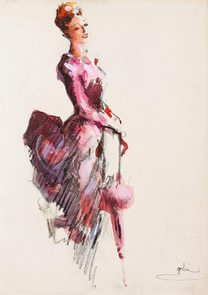 GOLIA (Eugenio Colmo) Torino 1885 - 1967 "Donna in rosa con ombrellino" 30x21...