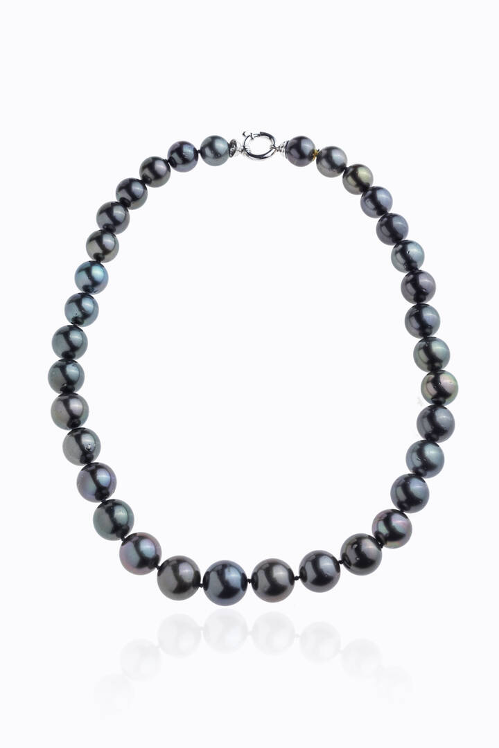 composto da un filo di perle Tahiti dal diam di mm 11 a 13,4. Chiusura in oro bianco ad anello