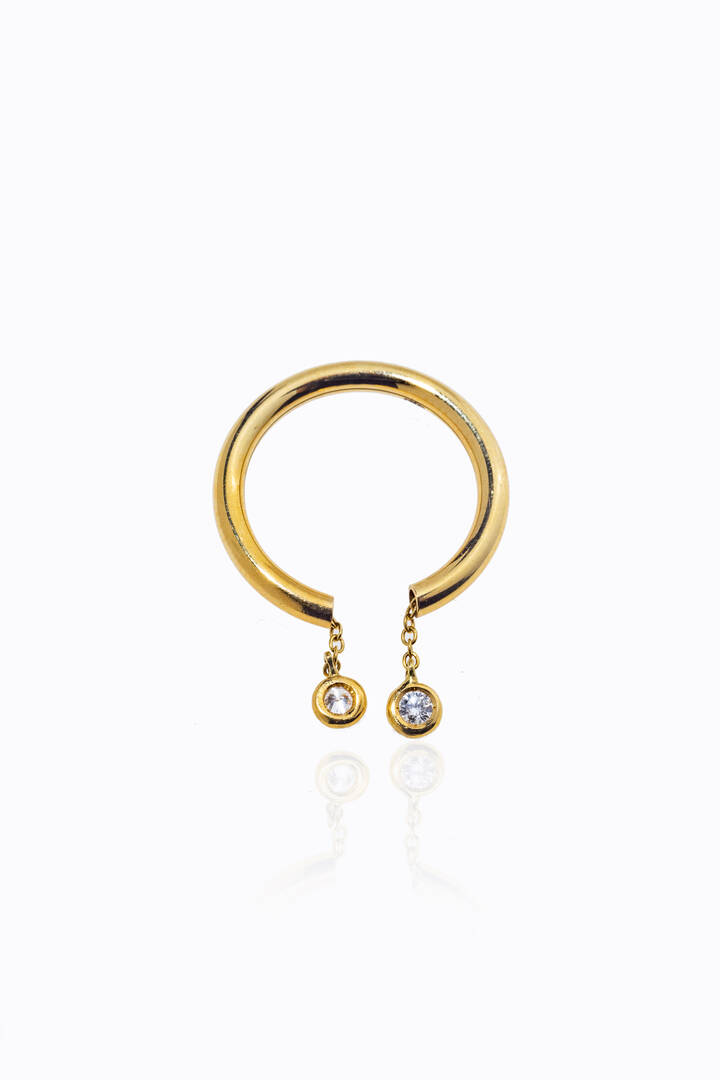 in oro rosa con terminali pendenti recanti due diamanti taglio brillante per totali ct 0,12 ca, probabile colore G-H, purezza IF-VVS
