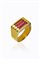 in oro giallo con al centro gemme sintetiche nei toni del rosa taglio baguette.