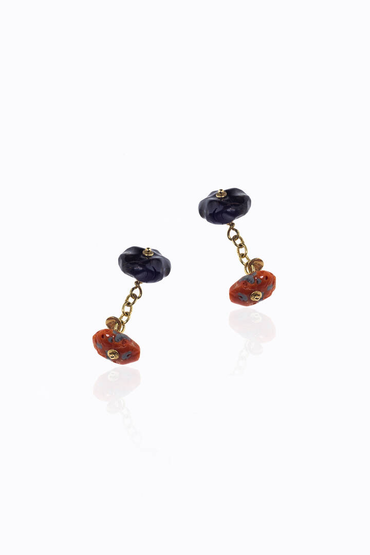 in oro giallo con pepite in onice e in pietra di colore rosso
