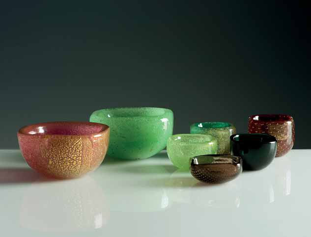 Venini. Tre coppe in vetro, disegno di Carlo Scarpa, 1935 circa. Firme ad...