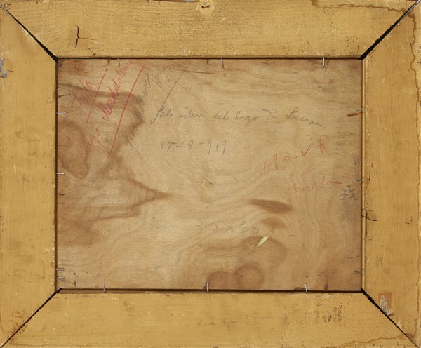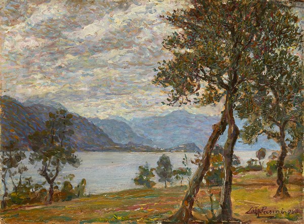 Lazzaro Pasini "Gli ulivi del lago di Lecco" 920 olio su compensato (cm 30x40) F