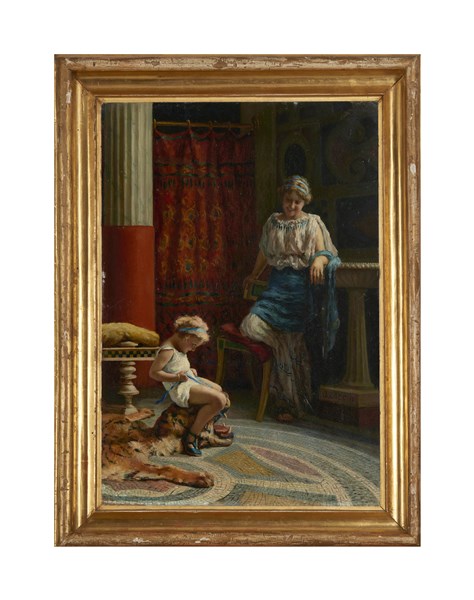 Guglielmo Zocchi "Scena d'interno" olio su tela (cm 50x35) Firmato a destra In