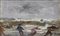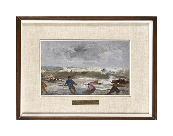 Pompeo Mariani "Tirando le reti" '86 olio su cartone (cm 18x29) Firmato, locato