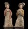 COPPIA DI FIGURE FEMMINILI 'FAT LADIES' IN CERAMICA PARZIALMENTE DIPINTACina, stile della dinastia Tang