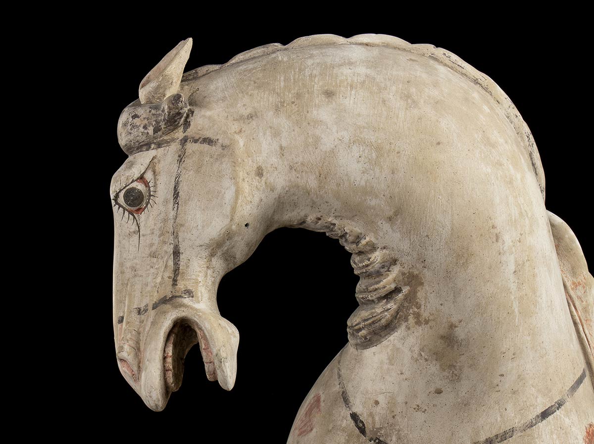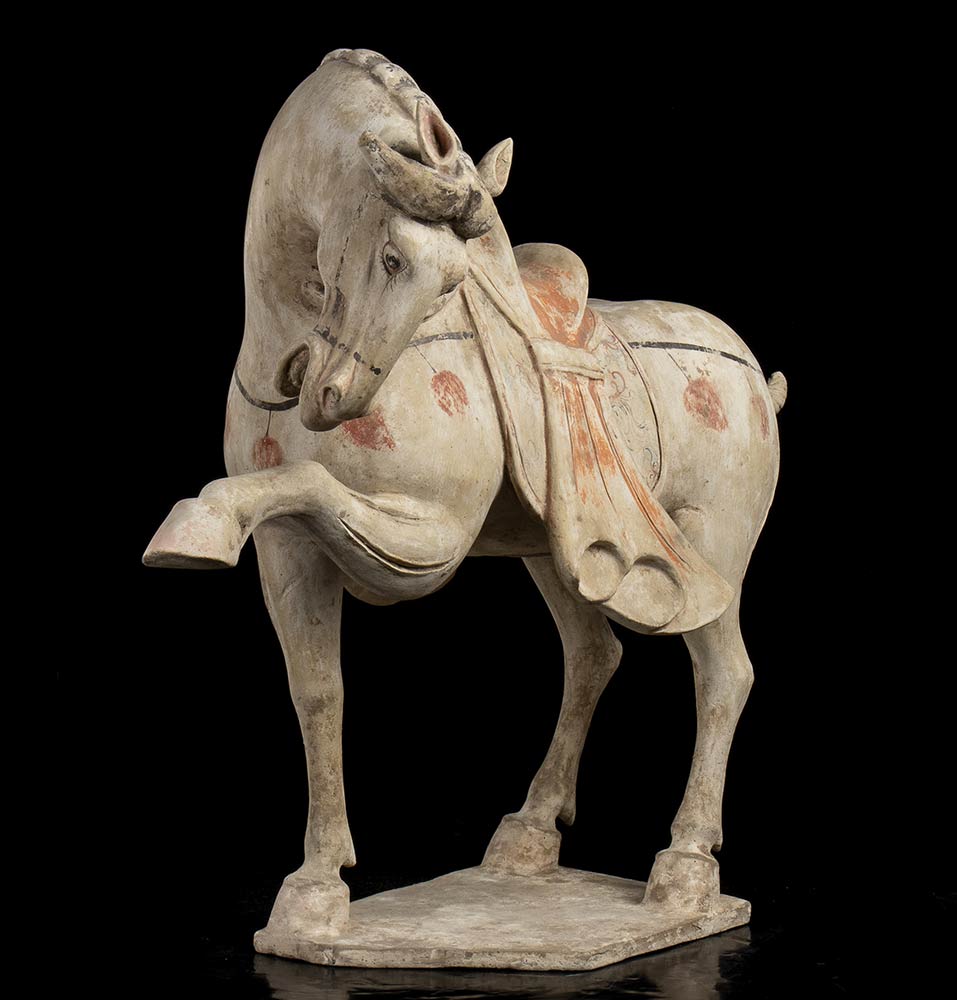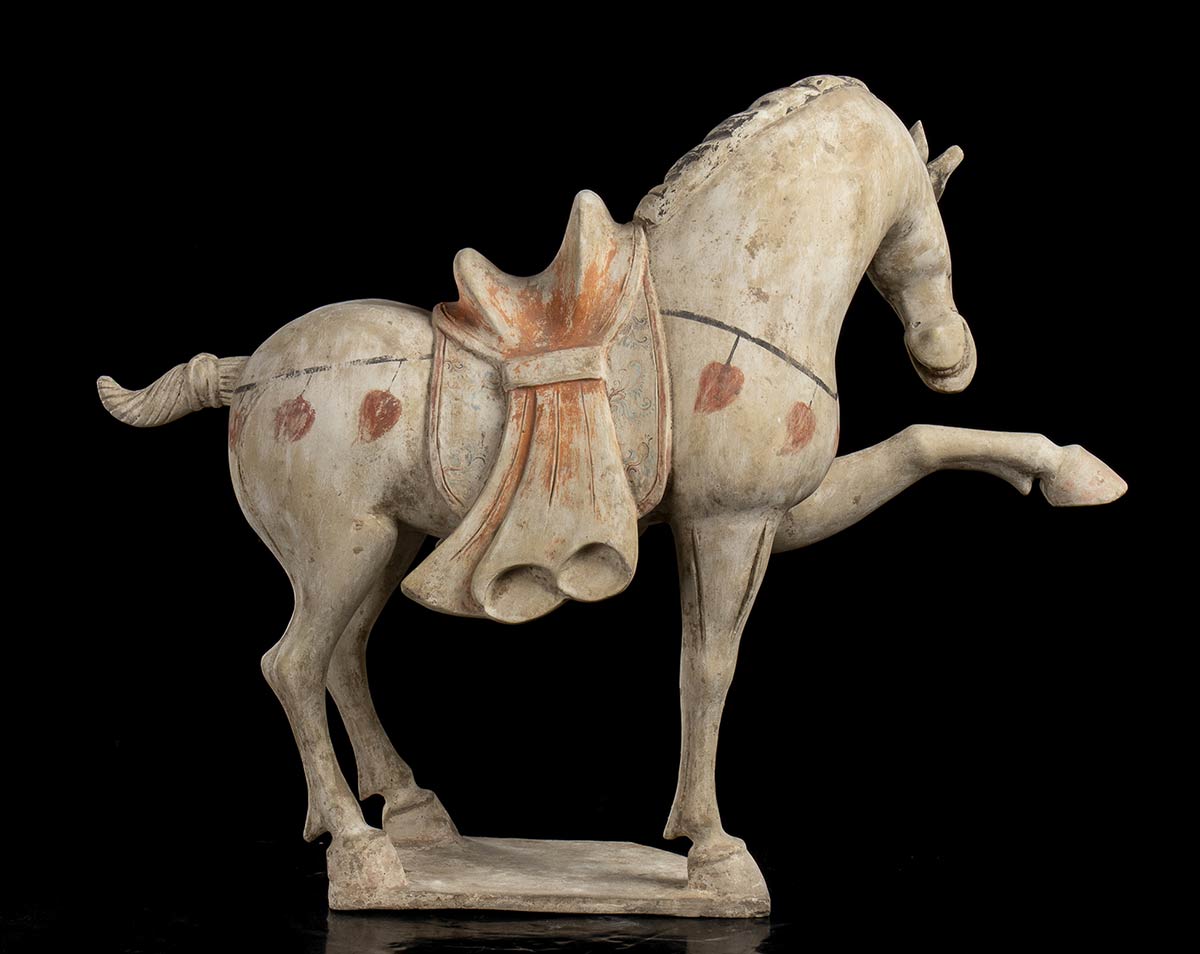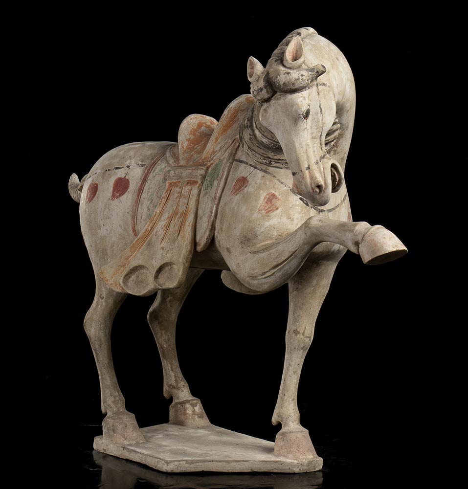 COPPIA DI CAVALLI IN CERAMICA PARZIALMENTE DIPINTACina, stile della dinastia Tang