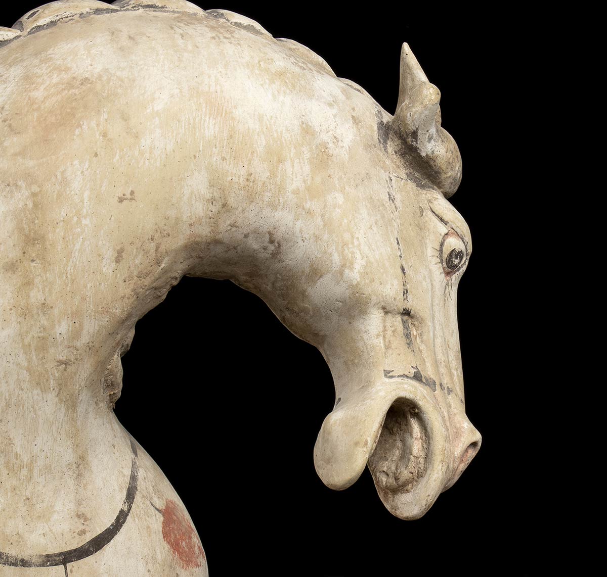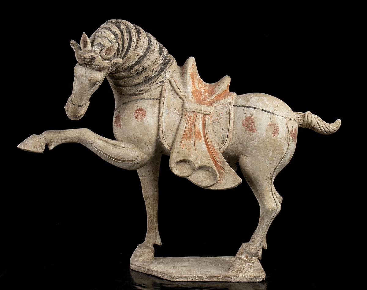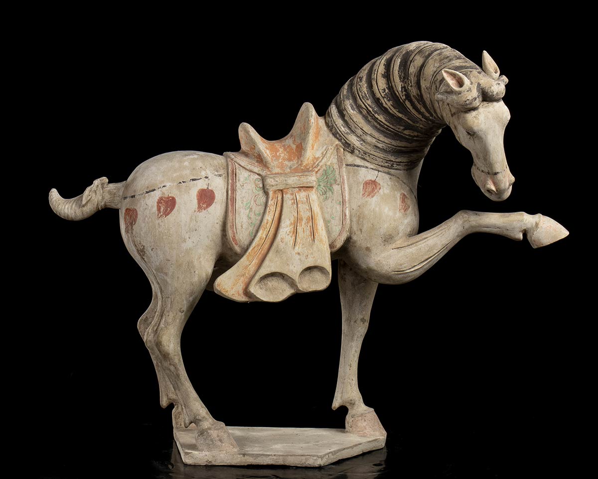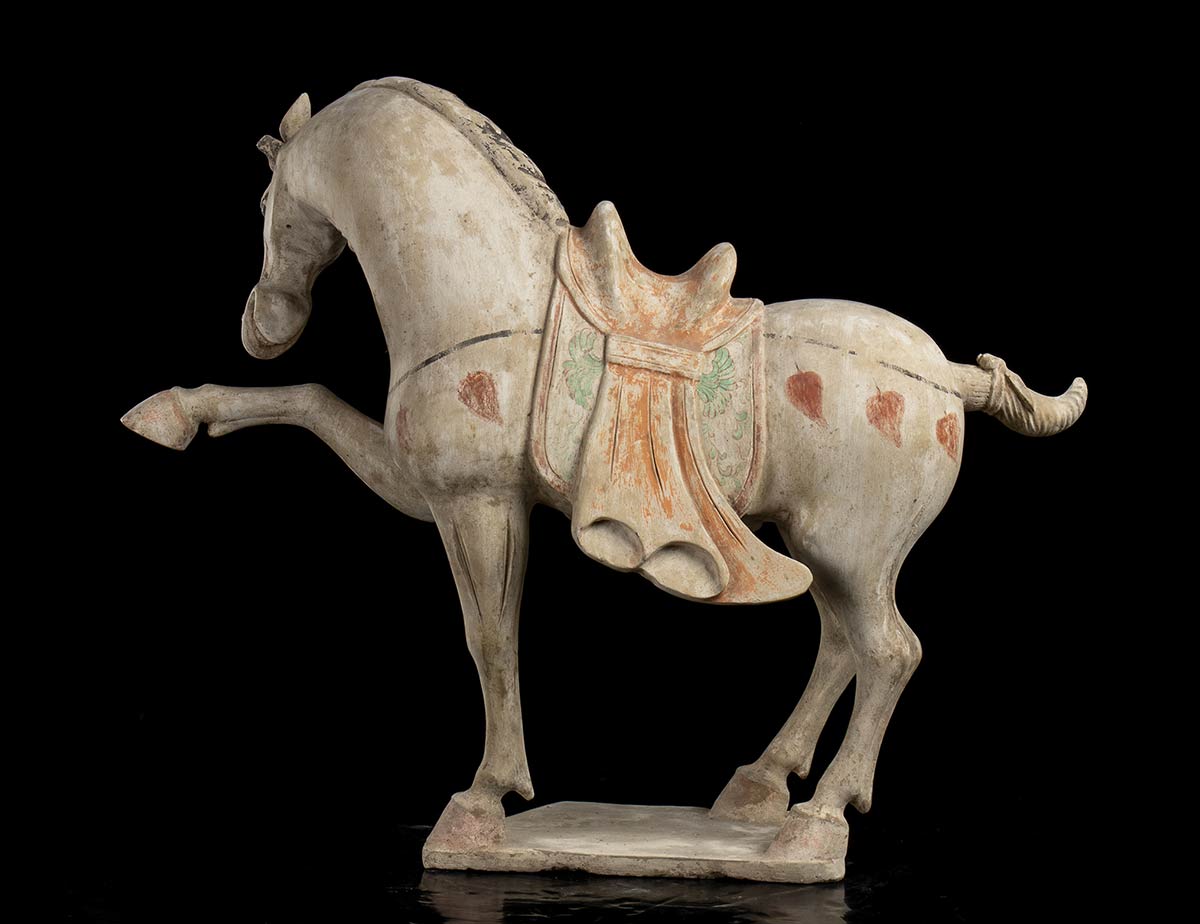 COPPIA DI CAVALLI IN CERAMICA PARZIALMENTE DIPINTACina, stile della dinastia Tang