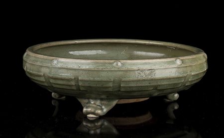 GRANDE INCENSIERE TRIPODE IN CERAMICA DI LONGQUAN CON INVETRIATURA CÉLADON Cina, inizio della dinastia Ming