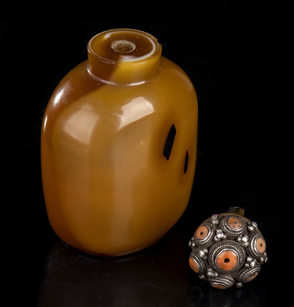 SNUFF BOTTLE IN VETRO CON TAPPO IN METALLO Cina, inizio del XX secolo