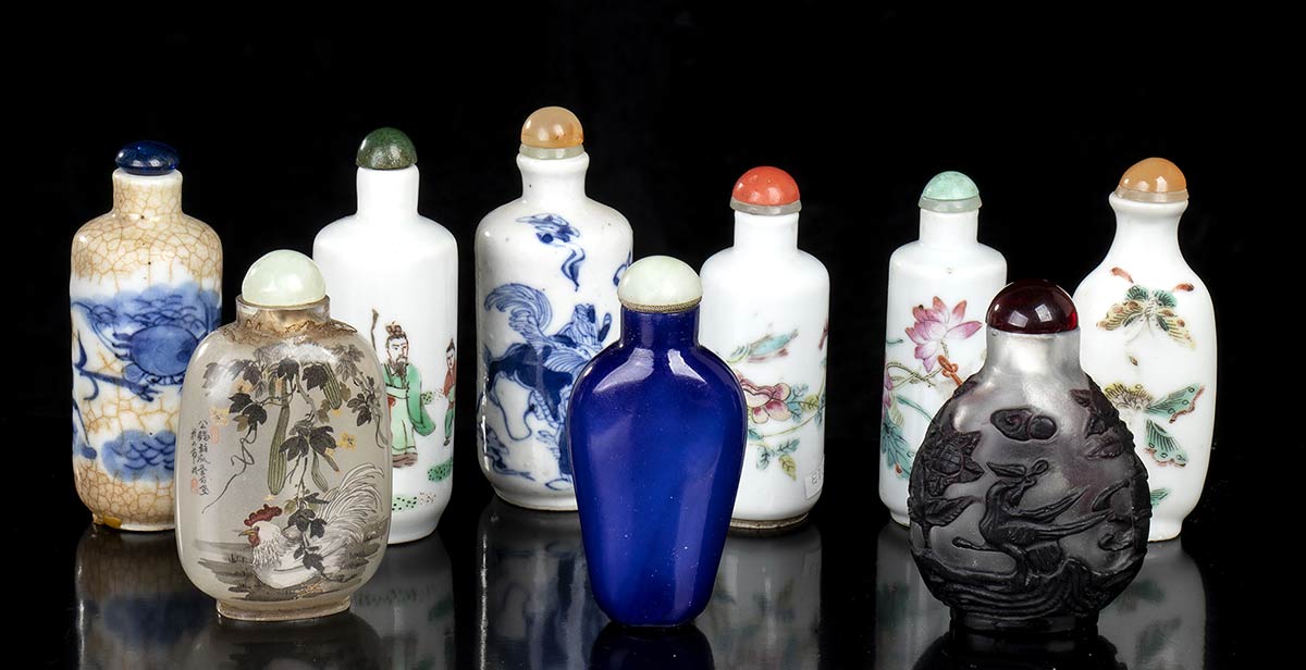 Lotto 120 | NOVE SNUFF BOTTLES IN MATERIALI DIVERSI Cina, XX secolo