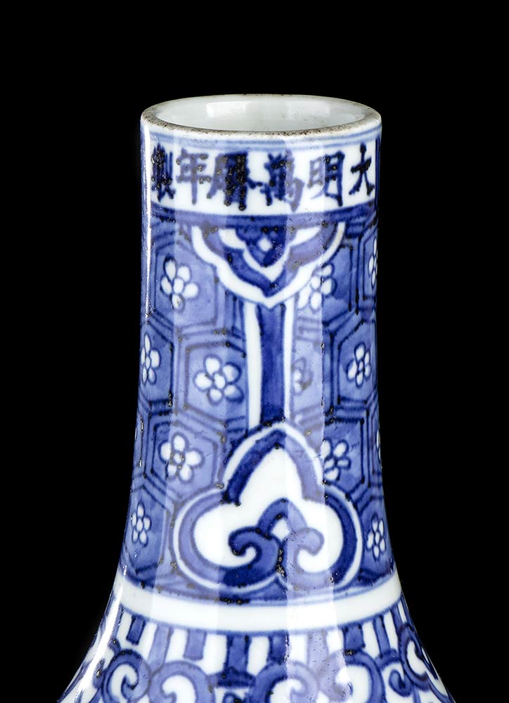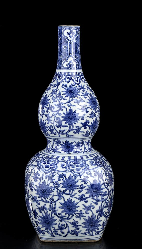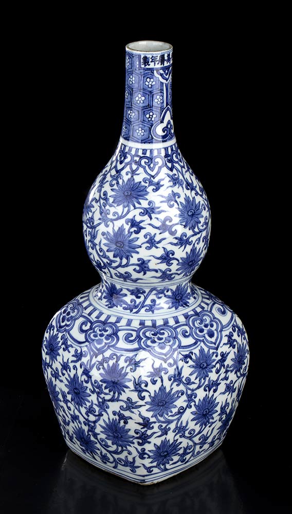 GRANDE VASO A DOPPIA ZUCCA IN PORCELLANA 'BIANCO E BLU' Cina, XX secolo