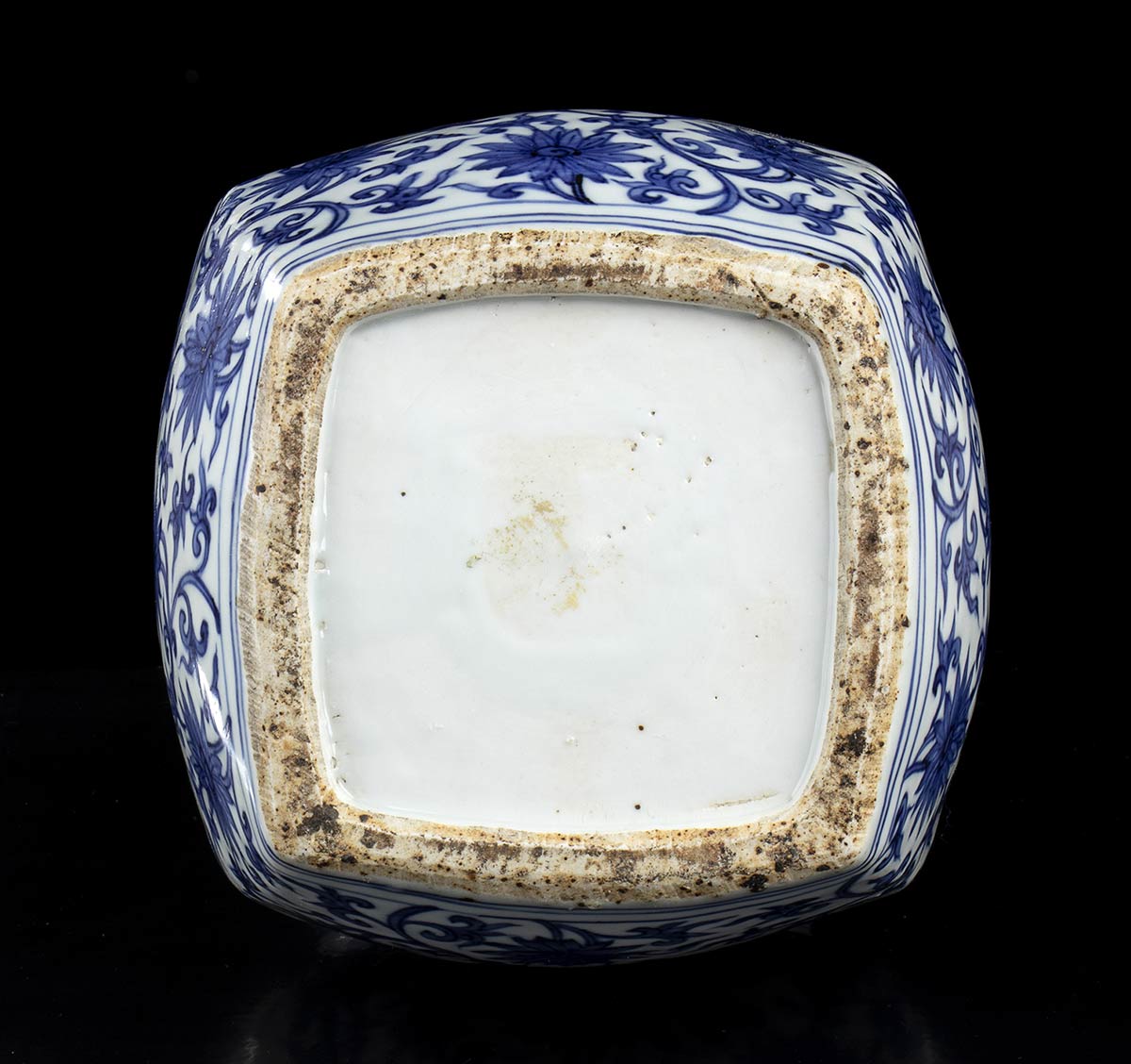 Decoro di fiori di loto, marchio apocrifo di Wanli a sei caratteri sull'esterno della bocca.