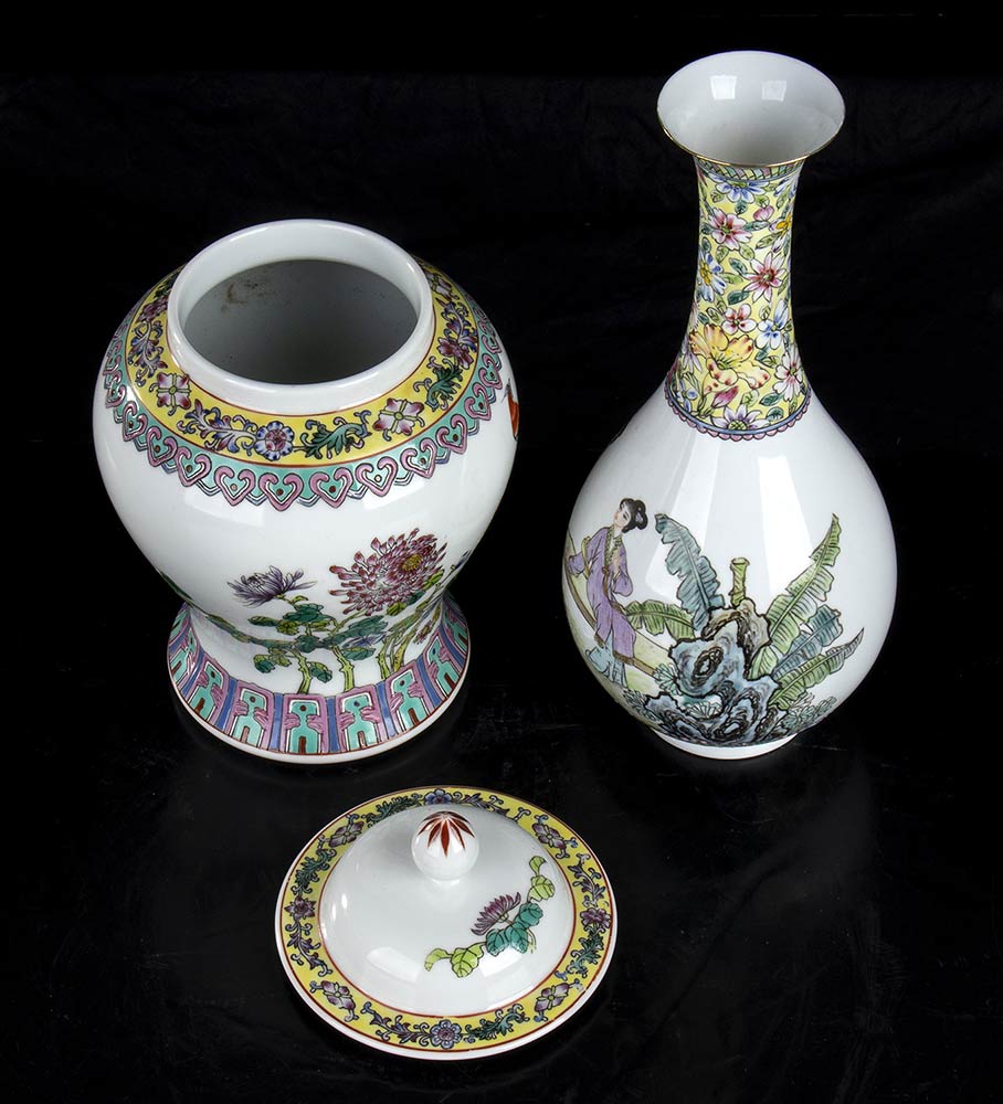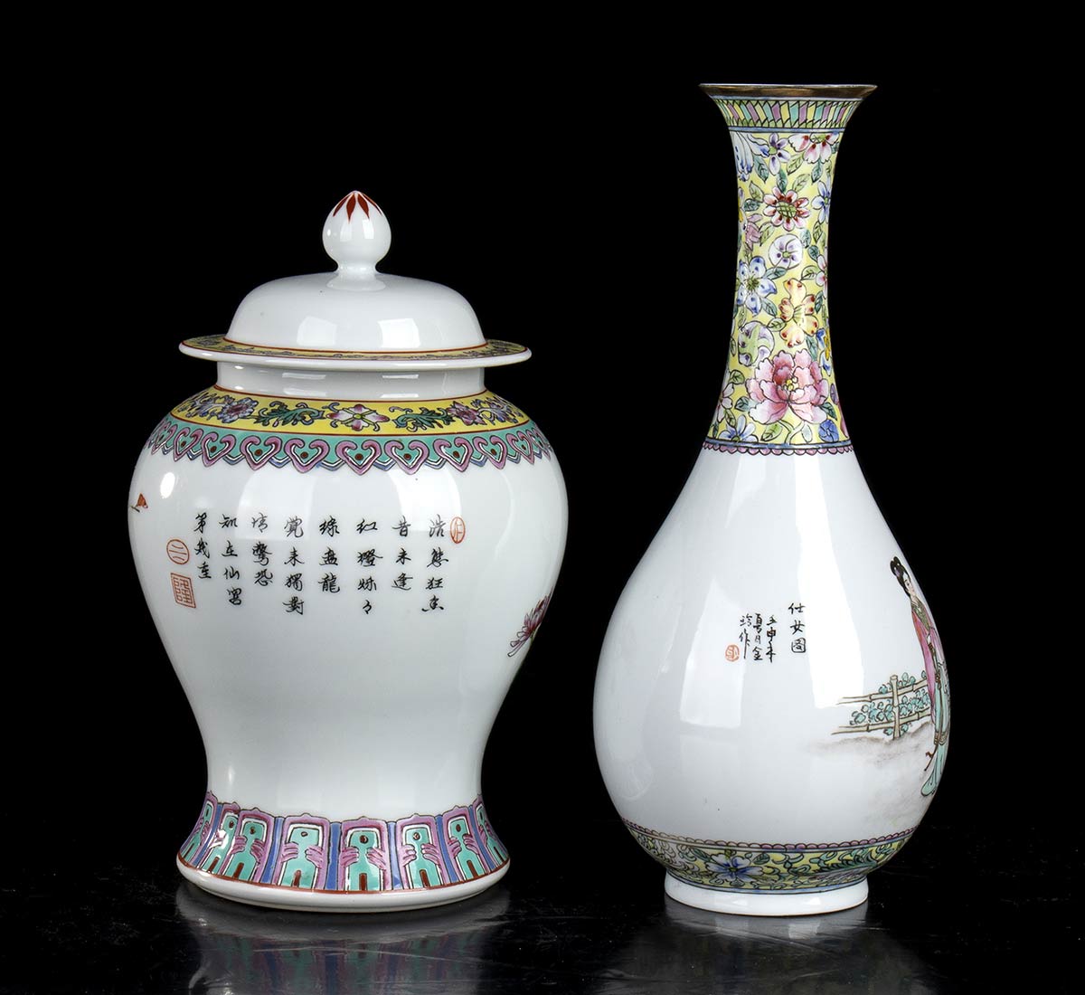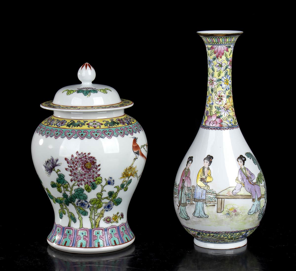 DUE VASI IN PORCELLANA CON DECORO POLICROMO Cina, XX secolo