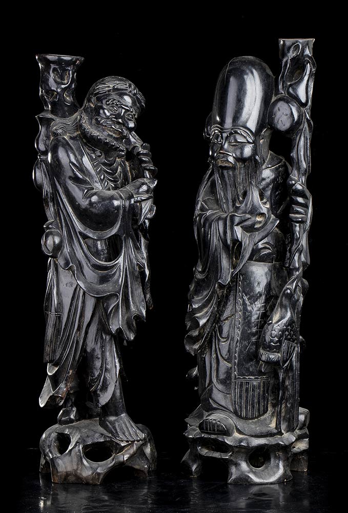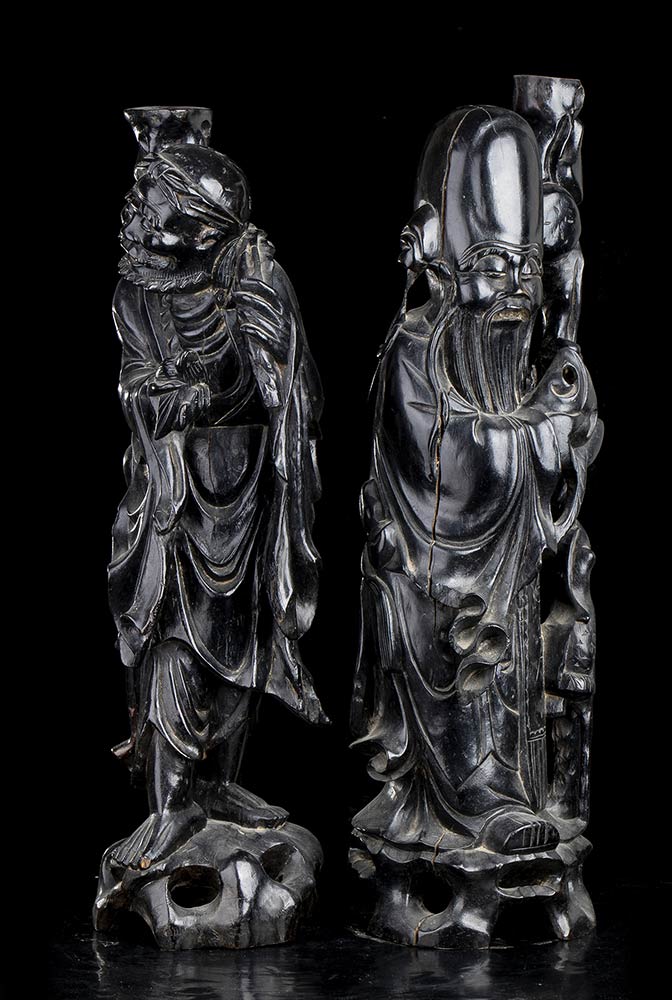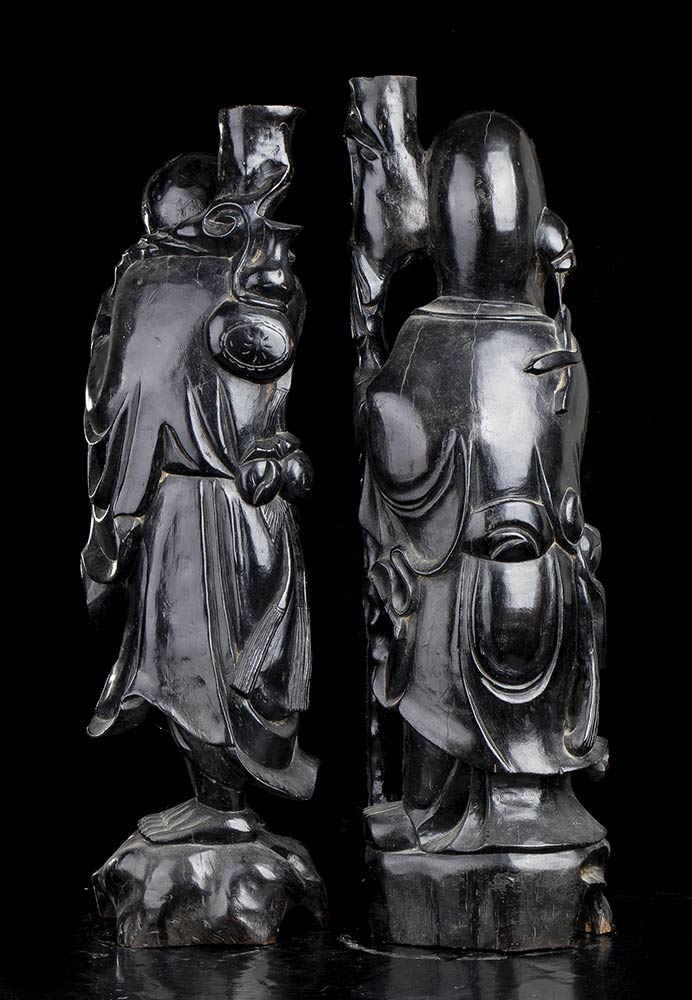 DUE SCULTURE IN LEGNO CON SHOULAO E LI TIEGUAI