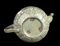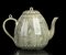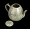 Il versatoio ha corpo ovoidale modellato in sgusci paralleli per verticale, beccuccio ritorto, presa a orecchio con anellino e coperchio a calotta ribassata con presina circolare, la decorazione – realizzata a intarsio di ingobbio bianco e bruno a riserva su invetriatura céladon – consiste sul corpo di fiorellini, verso la base e nei pressi della spalla di foglie appaiate.