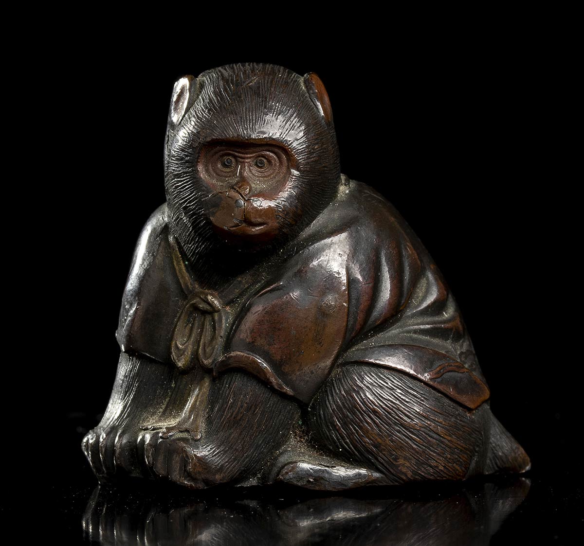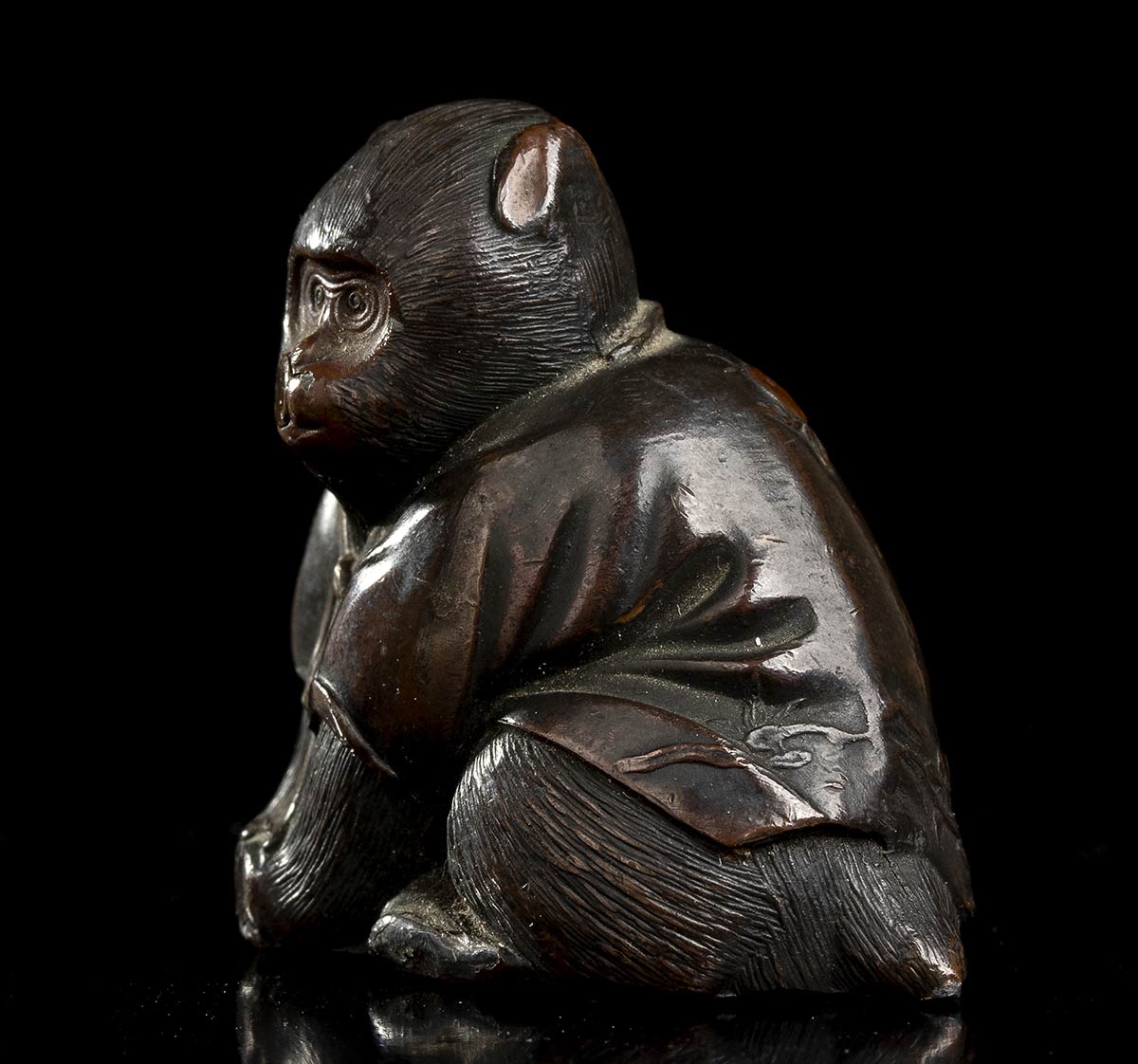 PICCOLO OKIMONO IN BRONZO CON SCIMMIA Giappone, periodo Meiji