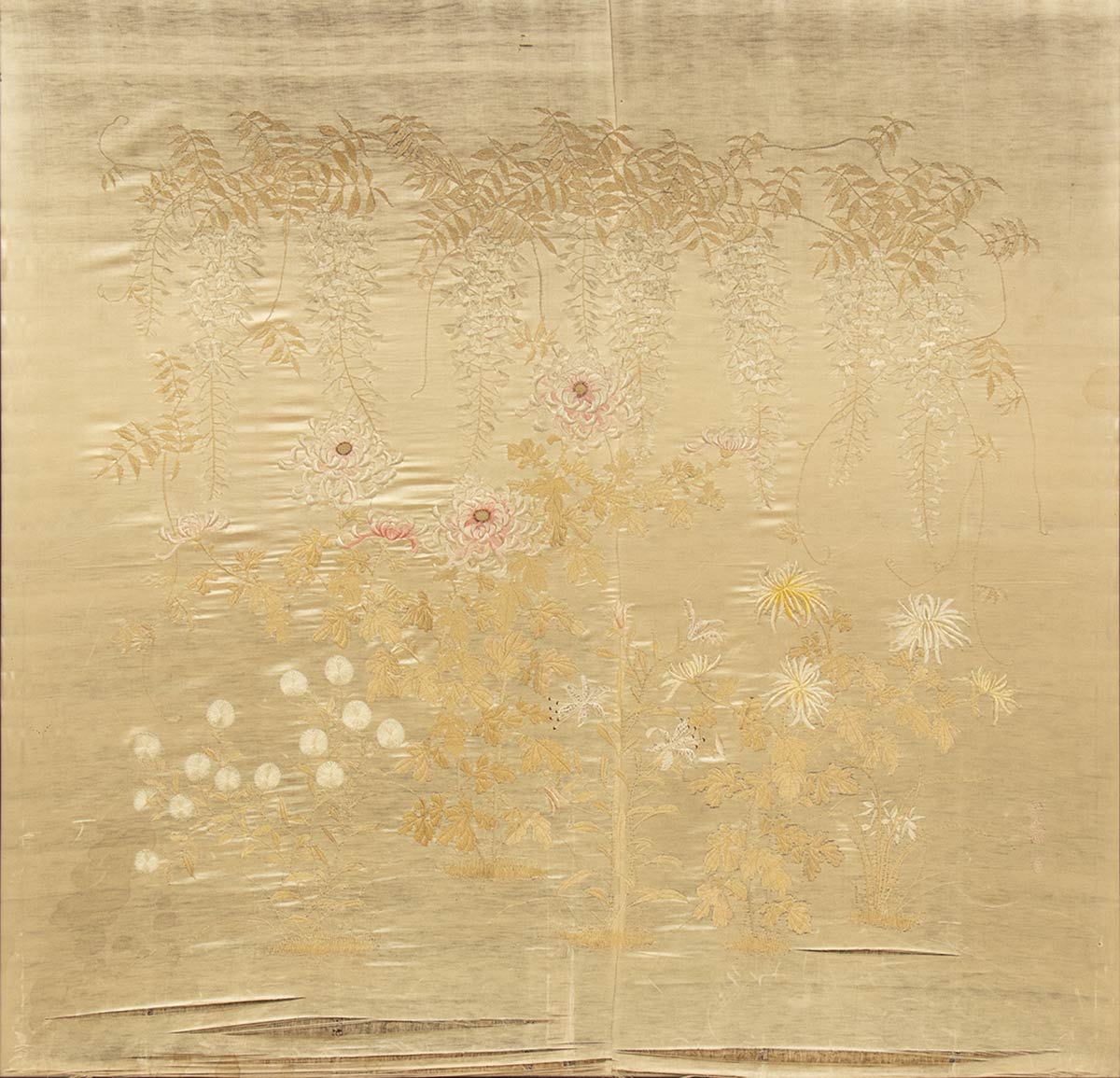 Lotto 222 | GRANDE PANNELLO IN SETA LAVORATA A RICAMO Giappone, periodo Meiji