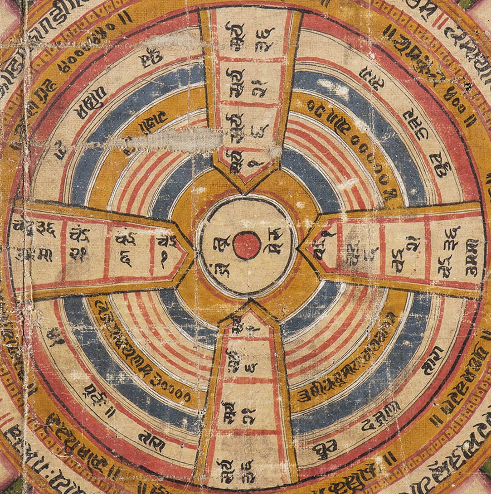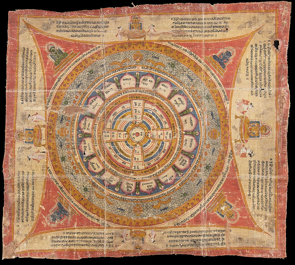DIPINTO JAINISTA A COLORI SU TESSUTO CON L'ORIGINE DEL COSMO India, Gujarat, XVI secolo