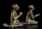 I due monaci raffigurati seduti con le mani giunte in gesto di preghiera, l'orlo dell'ampio abito che indossano arricchiti di inserti in vetro.