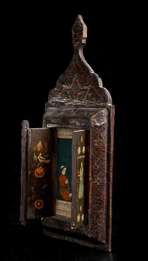 EDICOLA IN LEGNO CON MINIATURA Persia, XIX-XX secolo
