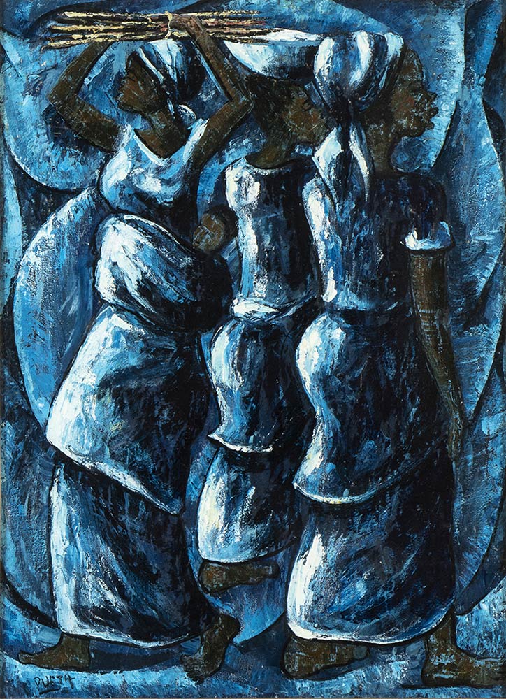 DIPINTO A COLORI SU TELA CON FIGURE FEMMINILI Africa, seconda metà del XX secolo