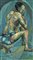 DIPINTO A COLORI SU TELA CON UOMO SEDUTO VISTO DI TRE QUARTI DA TERGO