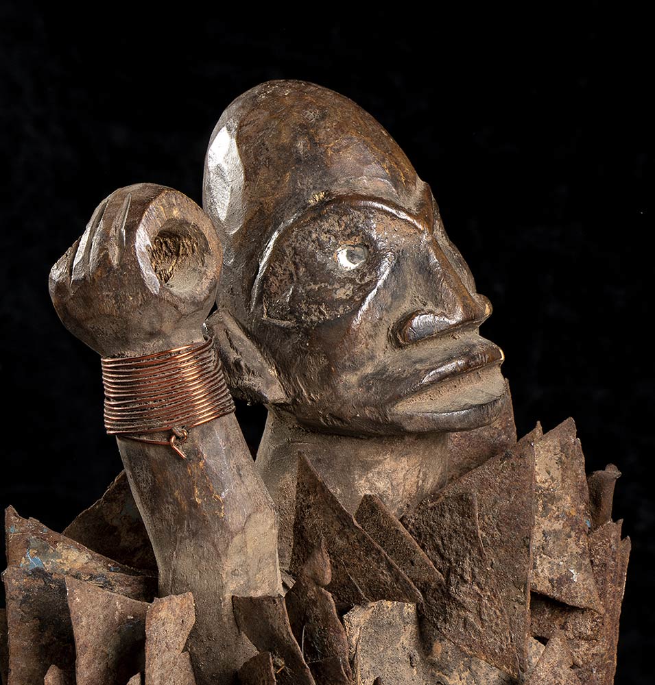 FETICCIO ANTROMORFO IN LEGNO, METALLO E VETRO Repubblica Democratica del Congo