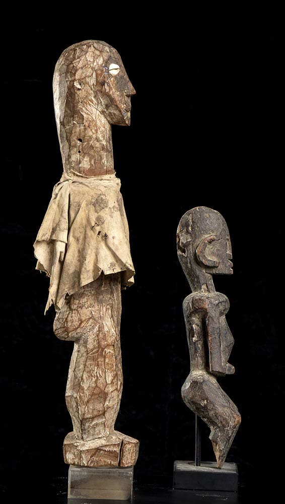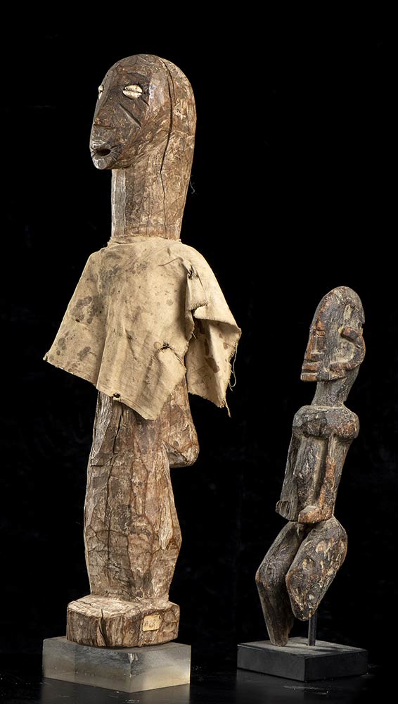 DUE FIGURE IN LEGNO E TESSUTO