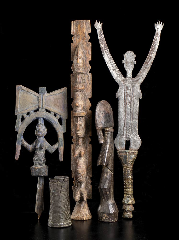 QUATTRO OGGETTI IN LEGNO E METALLO Africa