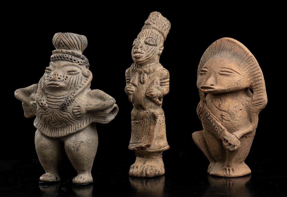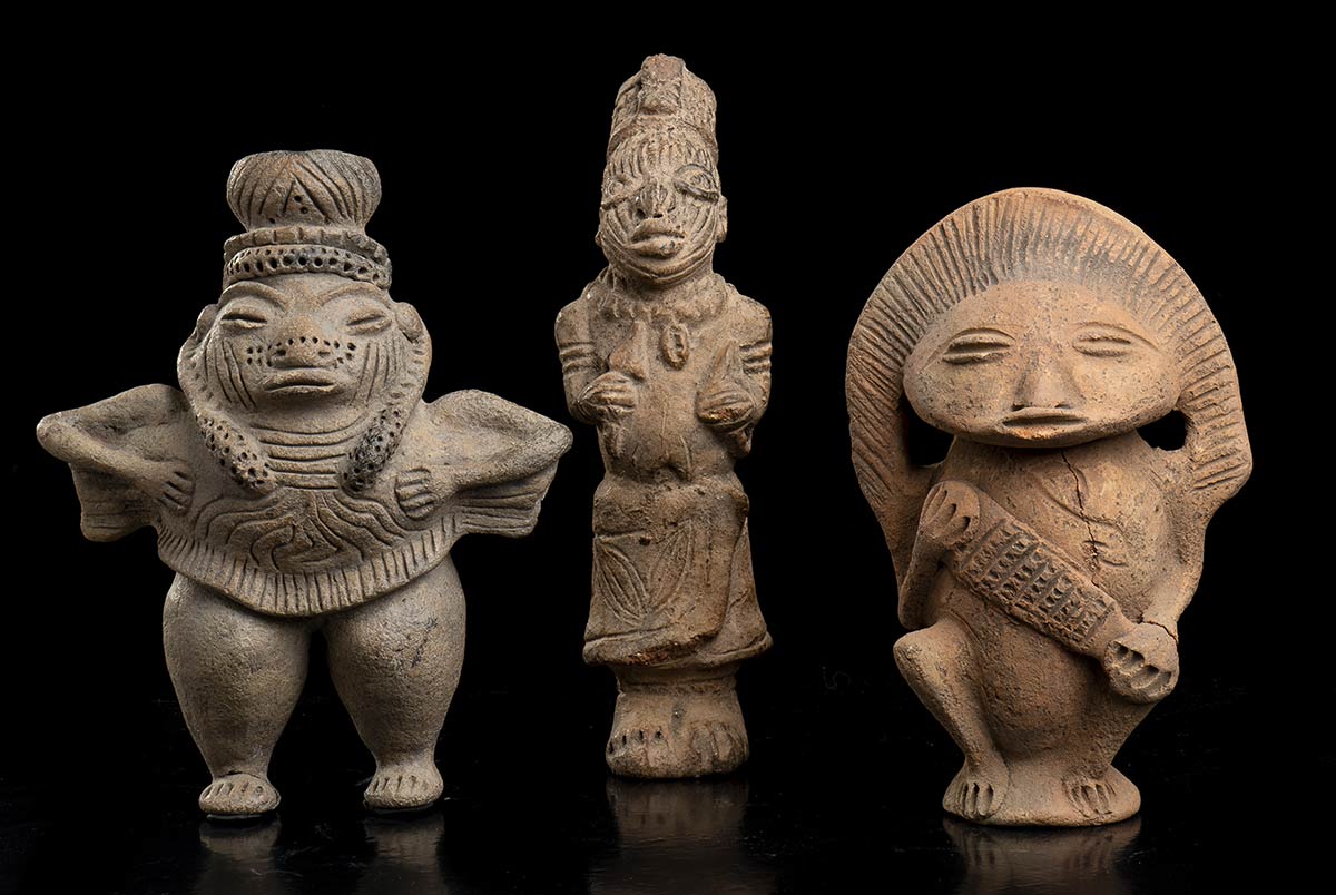 TRE FIGURE IN TERRACOTTA stile precolombiano e Africa