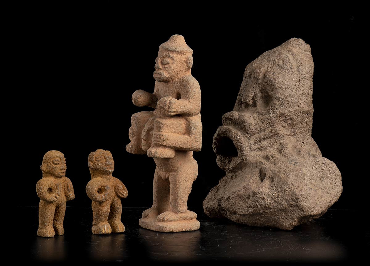 QUATTRO FIGURE IN TERRACOTTA stile precolombiano e Africa