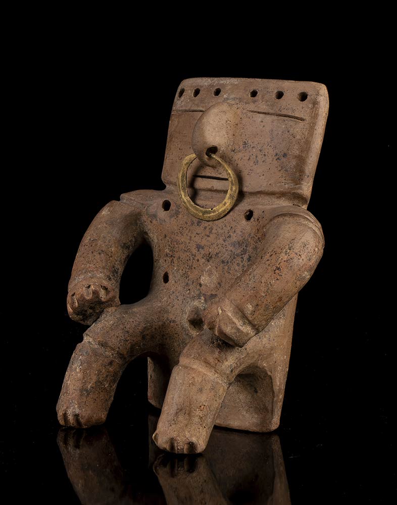 FIGURA IN CERAMICA CON ANELLO IN ORO Colombia, cultura Quimbaya