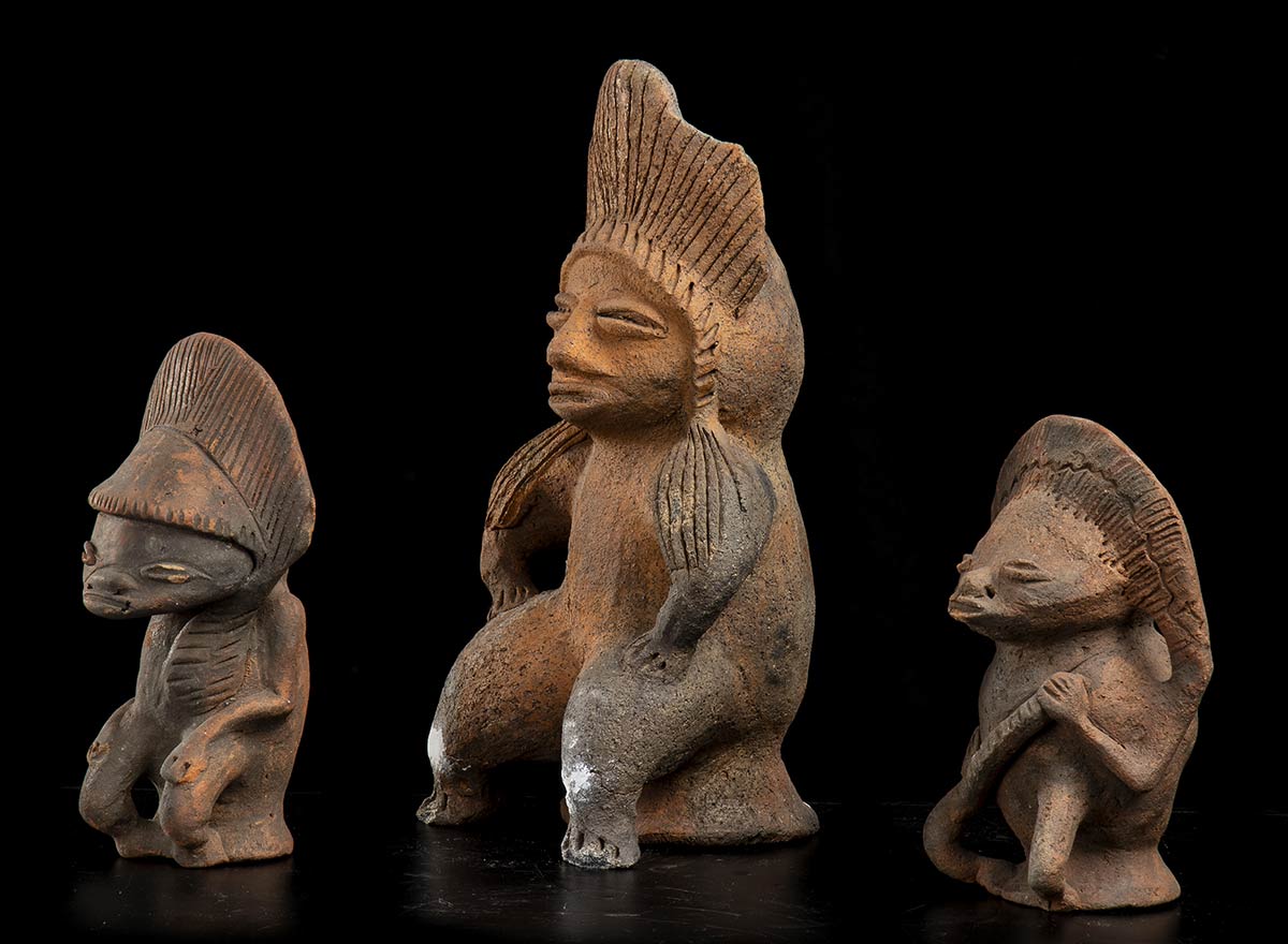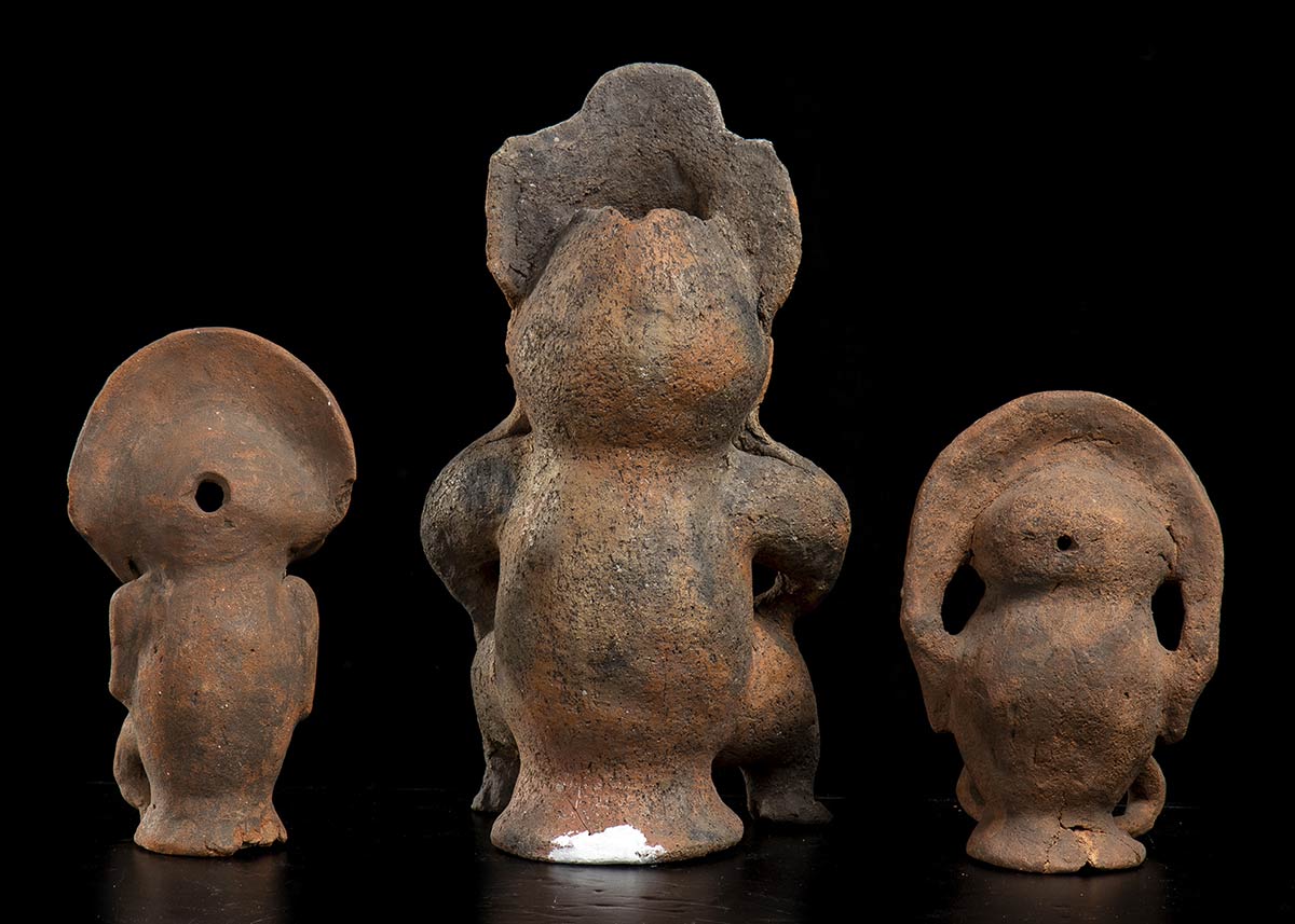TRE FIGURE IN TERRACOTTA stile precolombiano