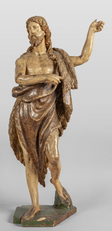 San Giovanni Battista scultura in legno intagliato e policromato Nord Italia sec.XVII