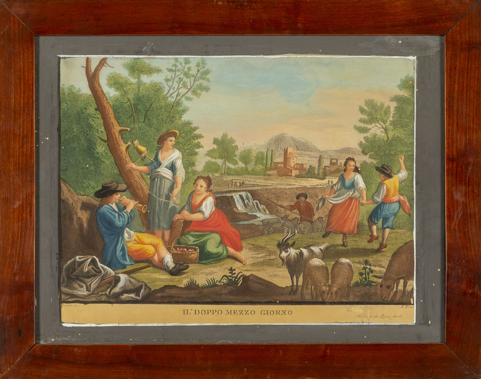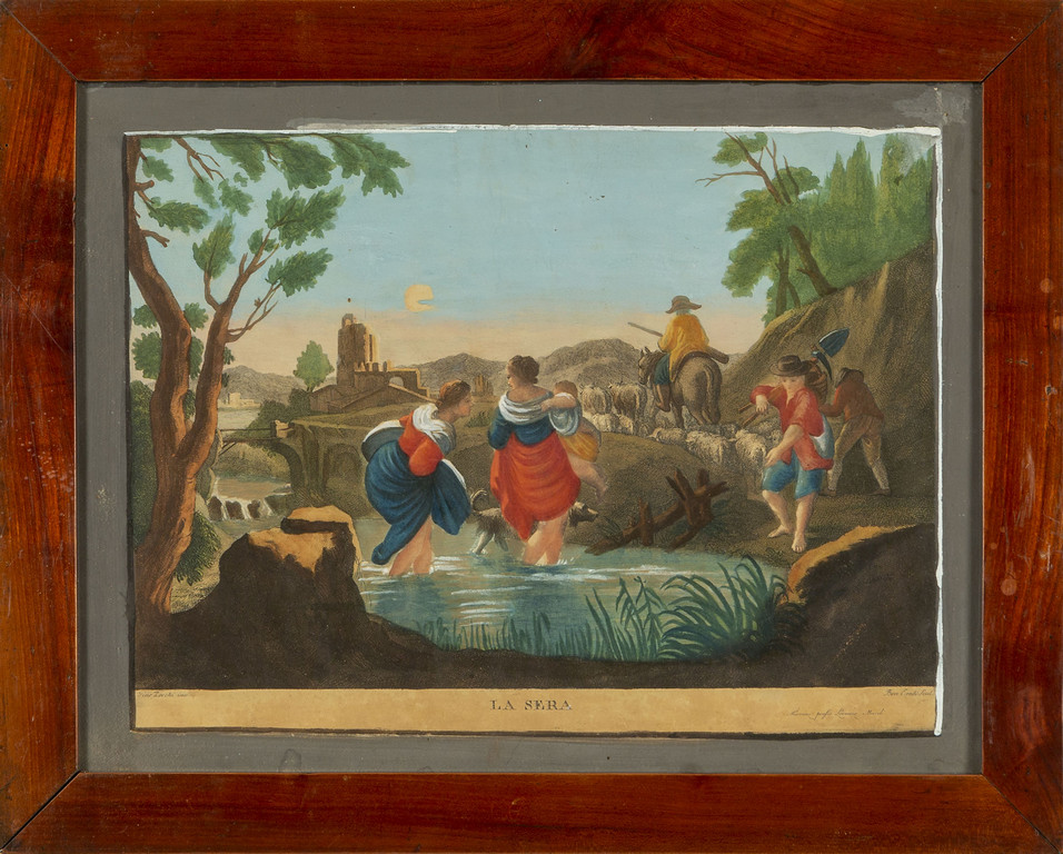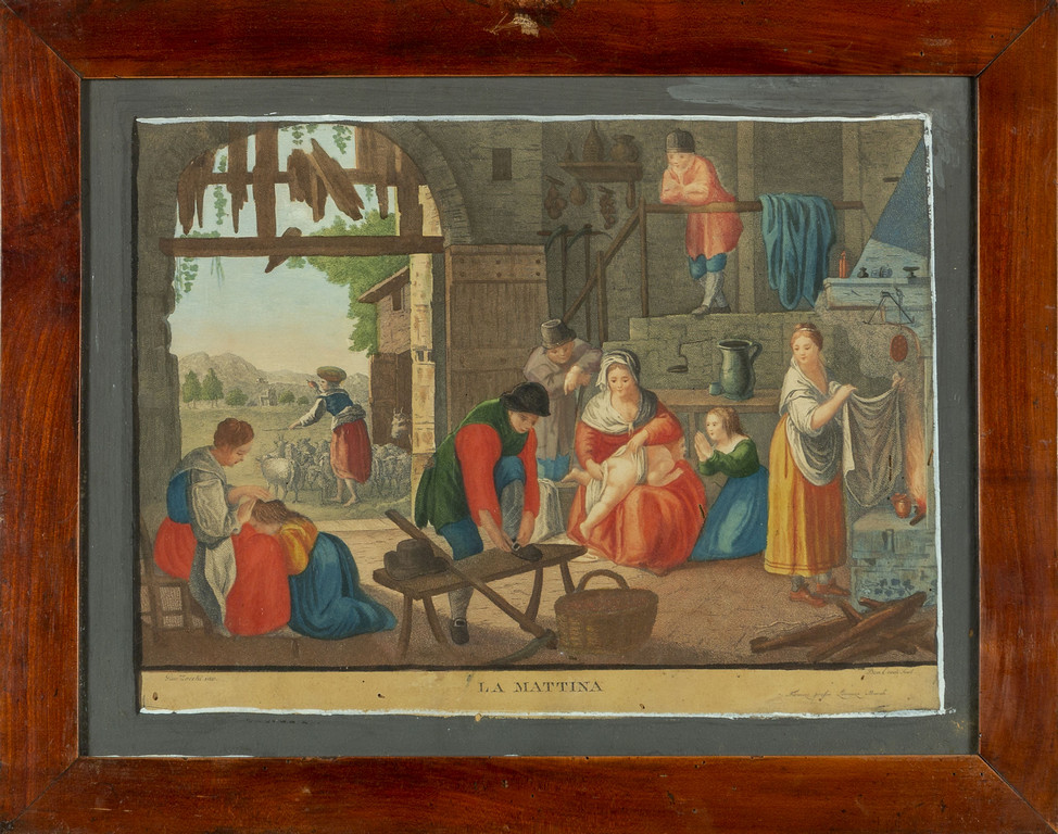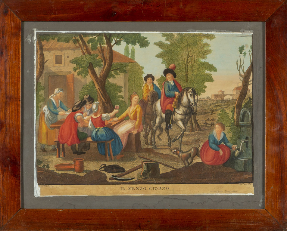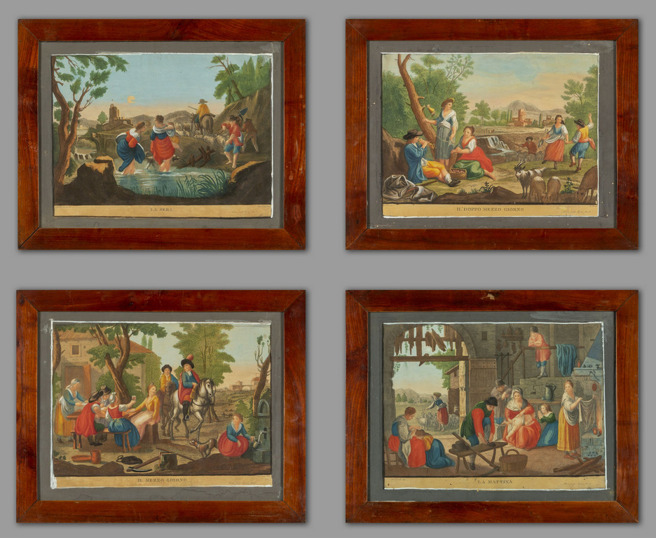 'Le fasi del giorno' quattro incisioni acquarellate G.Zocchi inv. sec.XVIII