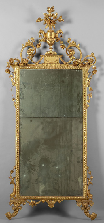Grande specchiera Luigi XVI in legno finemente intagliato e dorato Lucca II metà sec.XVIII