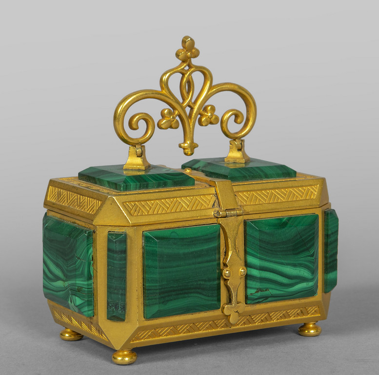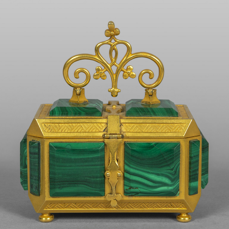 Cofanetto in malachite e bronzo dorato probabilmente Russia sec.XIX