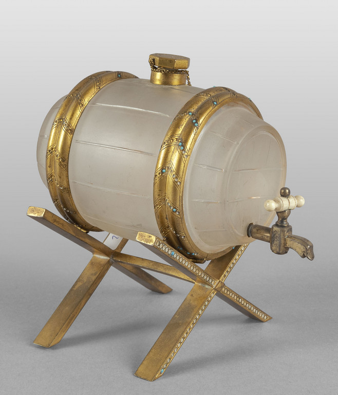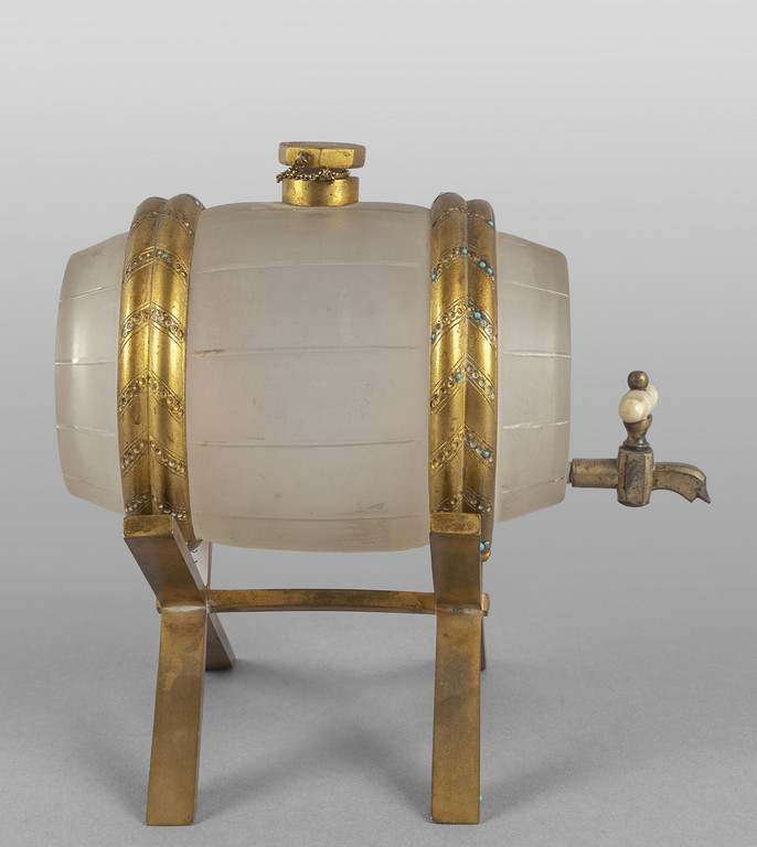 Modello di botte in vetro smerigliato e bronzo dorato con inserti di piccoli turchesi Vienna sec.XIX