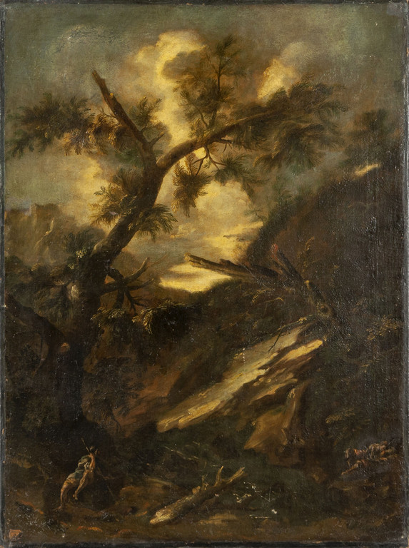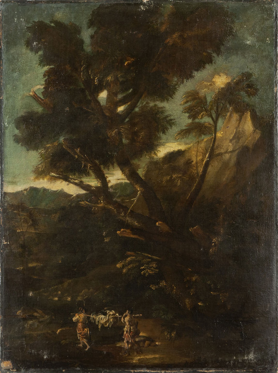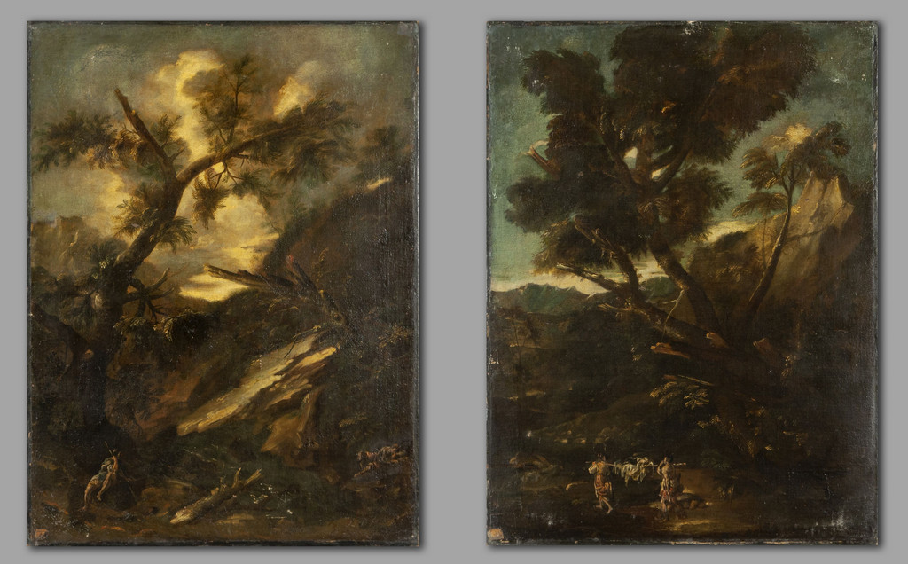 Scuola genovese sec.XVIII 'Paesaggi animati con figure' coppia di olii