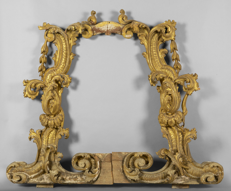 Coppia di grandi fregi Luigi XIV in legno intagliato e dorato sec.XVIII