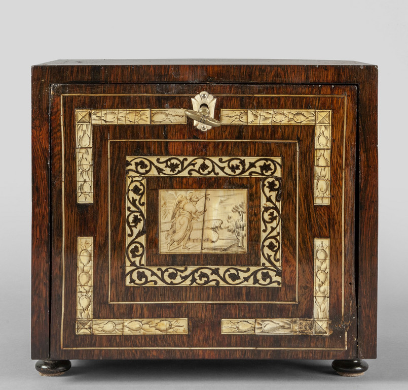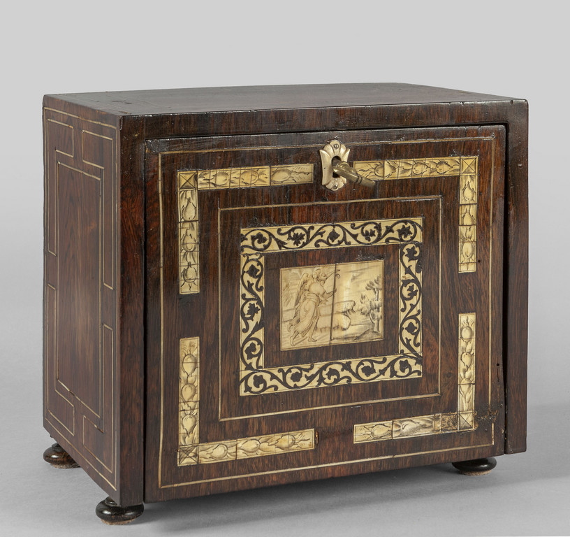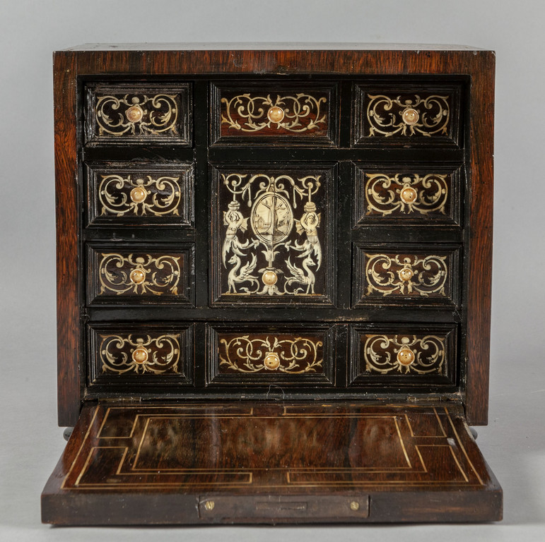 Piccolo monetiere a undici cassetti interni lastronato in palissandro ed intarsiato in osso Lombardia sec.XVIII
