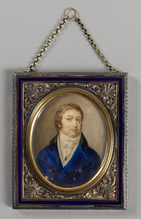 'Gentiluomo con abito blu' miniatura cornice in argento sbalzato sec.XIX