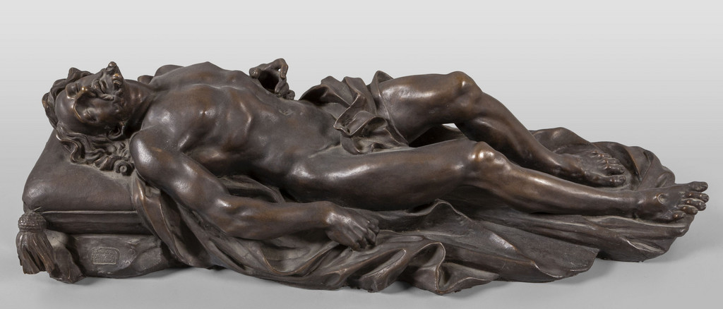 Cristo deposto scultura in bronzo a patina scura inizi sec.XIX