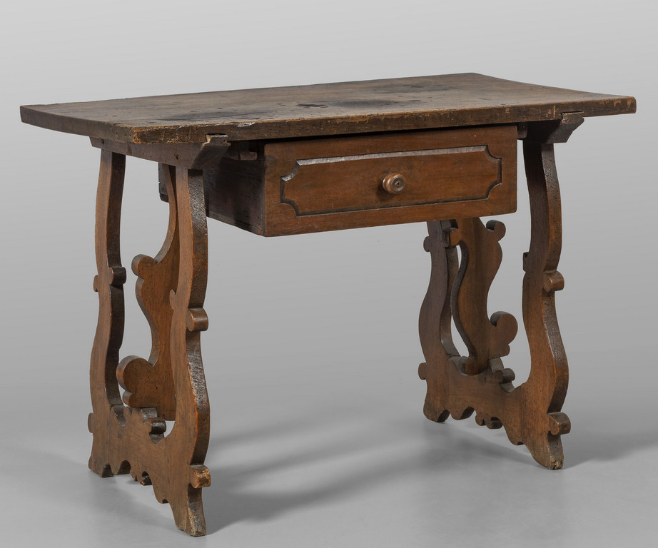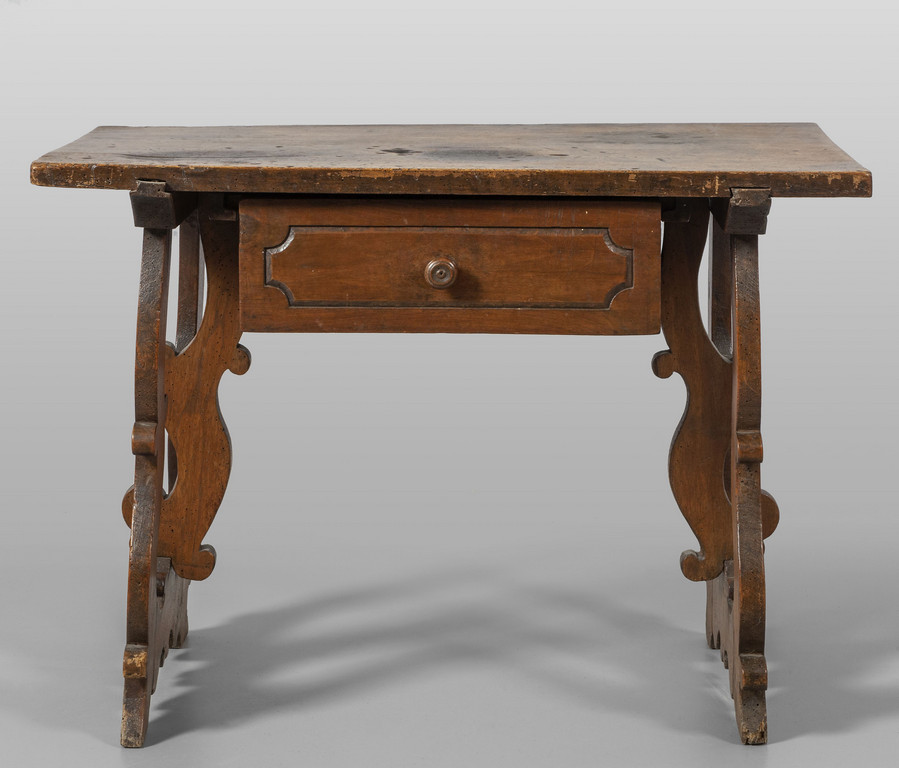 Piccola fratina in noce un cassetto nella fascia gambe a lira sec.XVIII