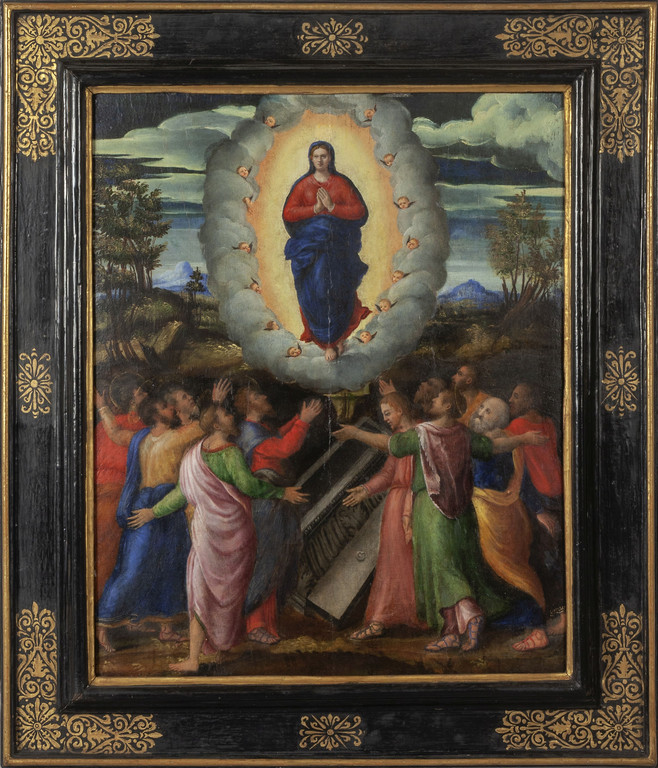 Scuola ferrarese sec.XVII 'Assunzione della Vergine' olio su tavola