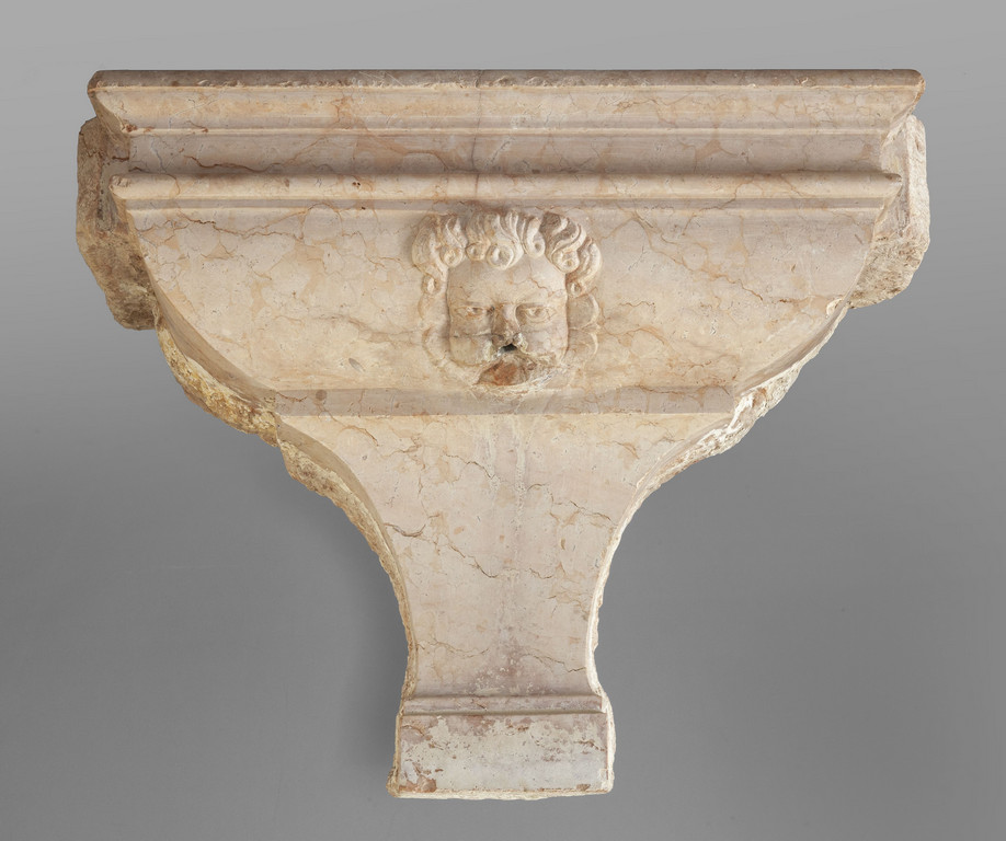 Elemento di fontana in marmo rosa di Verona con mascherone frontale sec.XVII