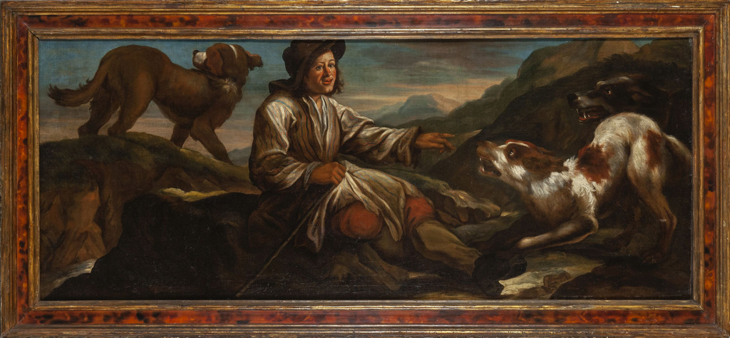 Scuola lombarda sec.XVII 'Pastore con i suoi cani' olio